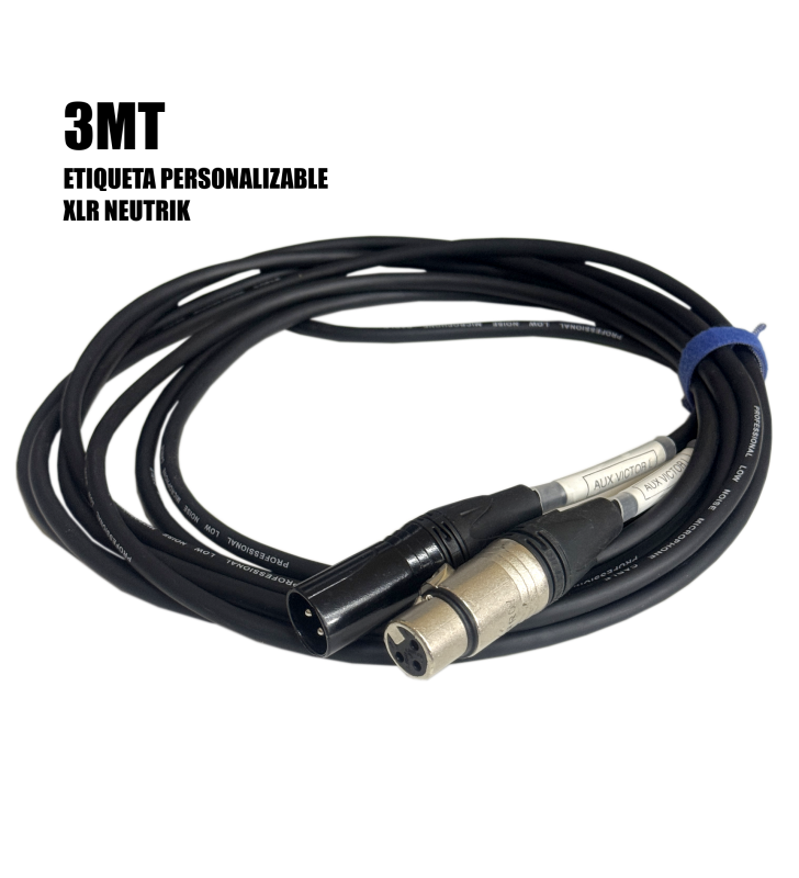 Cable XLR. conectores hembra-macho XLR. Etiquetado personalizable (indicar escribiendo en detalle del pedido, correo o whatsapp).