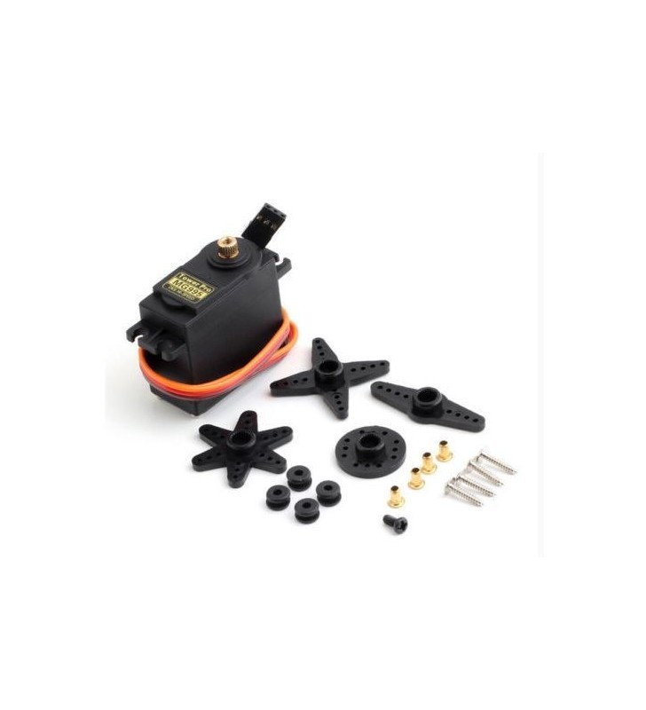 MOTOR SERVO 4.8V-6.0V, 180º, peso 55g, Stall Torque 8.5kgf cm (4.8V), 11kgf cm (6V), velocidad 0.20s/60° (4.8V), 0.16s/60°(6V), DIM. 40X19.7X42.9 mm app., Forma: MG995