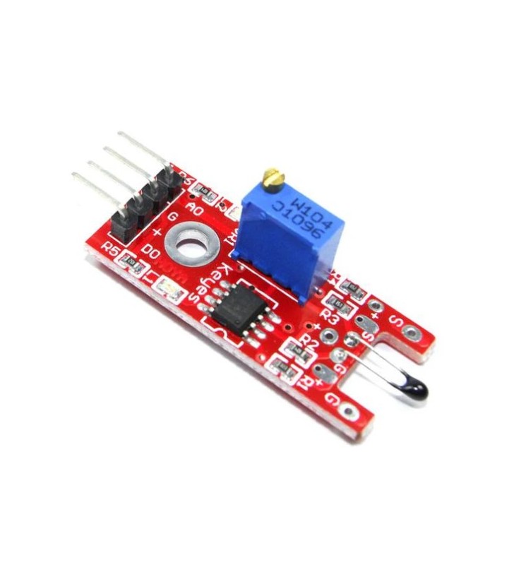 Módulo sensor de temperatura con comparador integrado, nivel ajustable permite generar salida para activar relés, contactores, LEDs, SCR, etc. FORMA: KY028